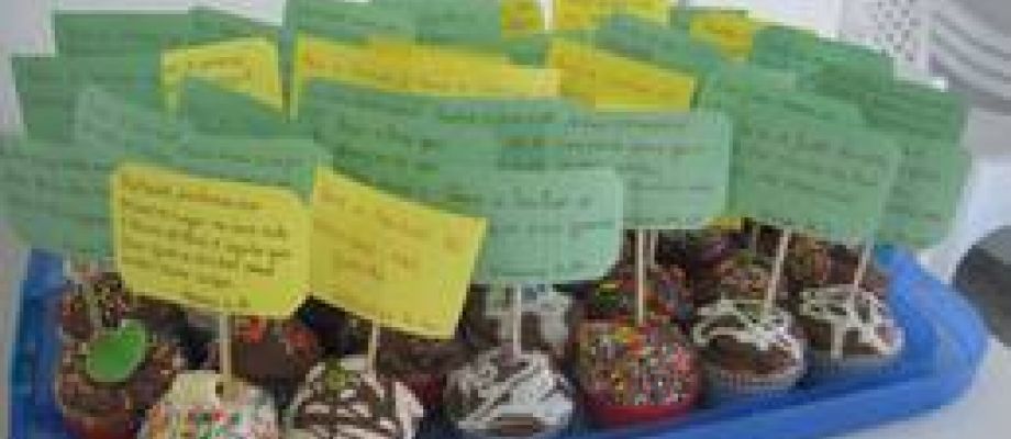 Wir überlegten, was könnten wir den Kindern zum Abschied schenken können und kamen dann zu dem Schluss, dass es toll wäre, wenn ein jedes Kind etwas zum mit nach Hause nehmen bekäme. So kauften wir daher kleine Silikonformen, haben zusammen 75 Muffins gebacken, gefüllt mit „doce de leite“ oder mit goiabada, und diese sehr schön bunt für die Kinder verziert. Um es nicht bei den Muffins zu belassen, haben wir am Abend zuvor noch eine Nachtschicht eingelegt, und auf kleine Kärtchen portugiesische Bibelverse geschrieben und an die Karten einen kleinen Holzspieß dran geklebt. Das fertige Geschenk gefiel uns sehr gut und sah aus wie ein kleines Boot.