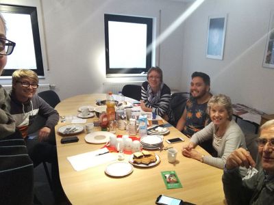„Am Samstag, den 17.12. erlebten wir dann eine große Überraschung. Viele Familien, zu denen wir Kontakt haben, folgten unserer Einladung. Es wurde für uns alle ein richtig schöner Nachmittag! Unser Kleiderkammer-Team bekam von Familienangehörigen und lieben Freunden noch Unterstützung und so konnten wir unseren Gästen einen schönen Nachmittag gestalten. Wir sangen Weihnachtslieder, hörten Flötenmusik, konnten von deutschen Weihnachtstraditionen berichten und es war uns ein Anliegen die Weihnachtsgeschichte zu erzählen. Bei einem Kaffeetrinken mit Plätzchen und Stollen hatten wir Zeit für Gespräche. Die Verständigung klappte auch schon viel besser, als noch vor ein paar Monaten, da viele von ihnen schon fleißig Deutsch lernen. Der ganze Nachmittag war von einer bunten fröhlichen Atmosphäre geprägt und froh konnten wir unsere Gäste – manche sogar mit einem selbstgebastelten Fröbelstern – verabschieden. Ich bin Gott so dankbar, dass ER den Nachmittag und das Miteinander so gesegnet hat. Und dass wir Christen berichten konnten, dass es zu Weihnachten nicht nur um den Weihnachtsbaum, um Geschenke, Stollen oder Räuchermann geht, sondern dass Jesus in Bethlehem geboren wurde.”